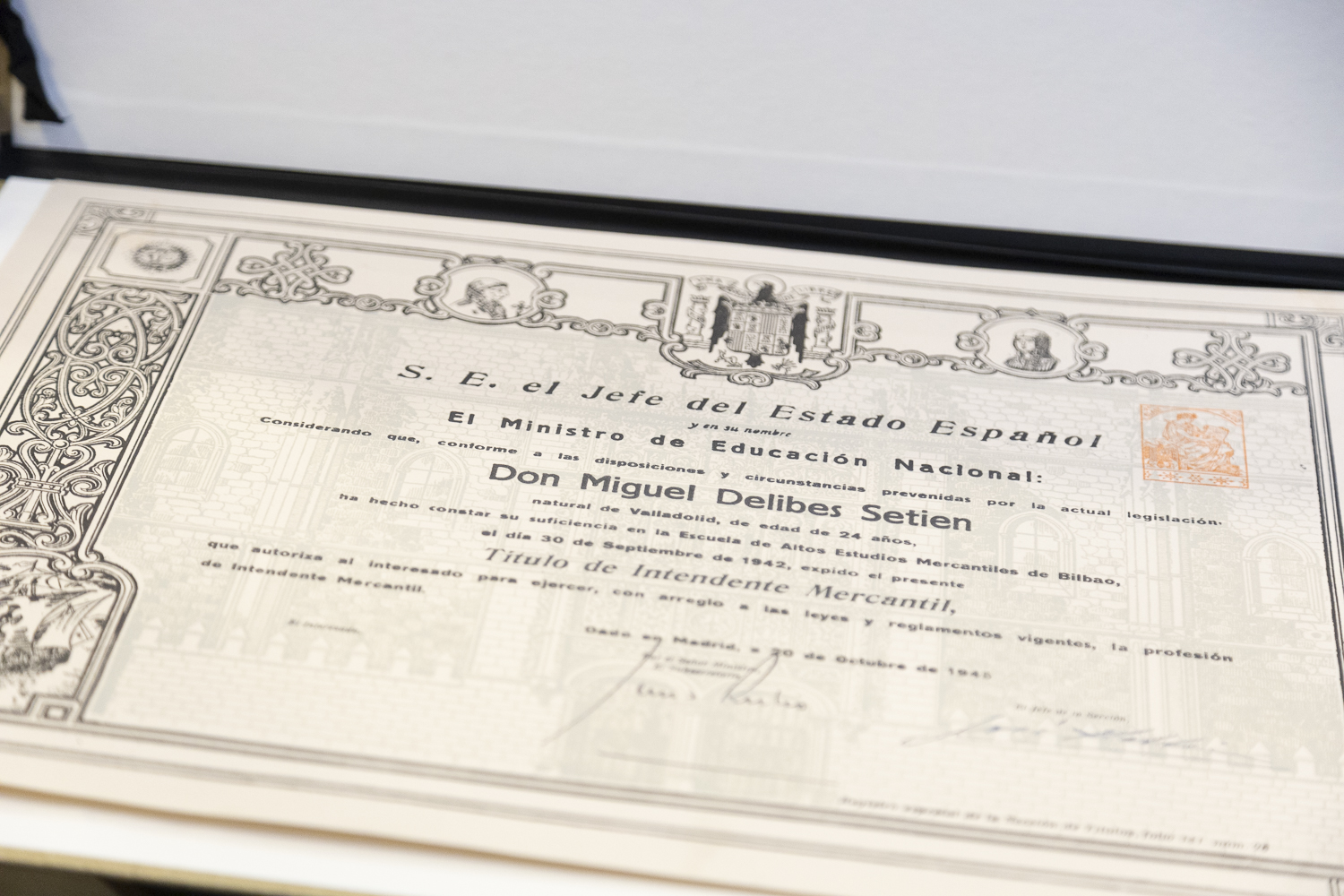 “Miguel Delibes, un grande de la literatura que sigue vivo en nuestro recuerdo, nos ha vuelto a sorprender. Esta vez apareciendo como titulado de la Escuela de Comercio de Elcano, hoy Facultad de Economía y Empresa. El hallazgo del título no recogido por el escritor, que estudio y se graduó como intendente mercantil, descubre un rasgo de su pasado que nos ilusiona”, se ha felicitado Jon Barrutia, decano de la Facultad de Economía y Empresa de la UPV/EHU.