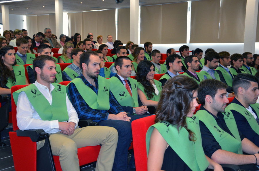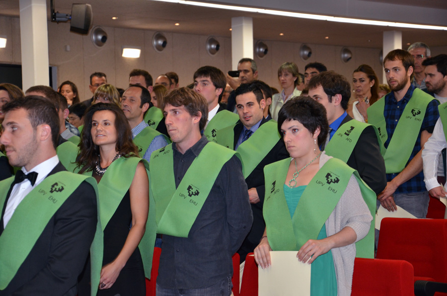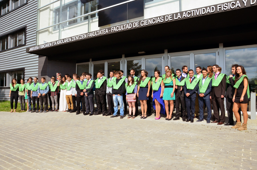 En el Aula Magna de la Facultad de Ciencias de la Actividad Física y del Deporte de la Universidad del País Vasco/Euskal Herriko Unibertsitatea, se celebró el acto de entrega de diplomas al alumnado de licenciatura correspondiente a la promoción 2013/14. La ceremonia, presidida por el vicerrector del Campus de Álava de la UPV/EHU, Javier Garaizar, contó también con la presencia de Francisco Javier Alonso, director de Universidades y Educación del Gobierno Vasco, y de la decana de Facultad de Ciencias de la Actividad Física y del Deporte, Maite Fuentes.