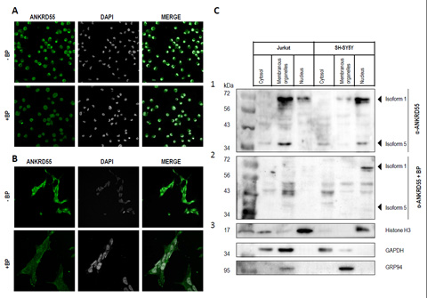 Además de ello, el equipo ha conseguido demostrar que las proteínas de ANKRD55 residen en los núcleos de las células, y eso sugiere que pueden jugar un papel relevante en los procesos específicos que tienen lugar en el núcleo celular, como la transcripción de genes. Este trabajo, que se ha desarrollado en colaboración con el grupo de la Dra. Carmen Guaza del Instituto Cajal de Madrid, y los Dres. X. Montalban y M. Comabella del Val d'Hebron Institut de Recerca en Barcelona, supone un avance significativo en la comprensión de la biología del gen ANKRD55 y de las proteínas que expresa, dado que descubre a un nuevo actor en el proceso de neuroinflamación que se da en la Esclerosis Múltiple. Así, los resultados de este estudio potenciarán un estudio en profundidad de ANKRD55, con el objetivo último de abrir vías diagnósticas y terapéuticas en beneficio de los pacientes que sufren EM.
