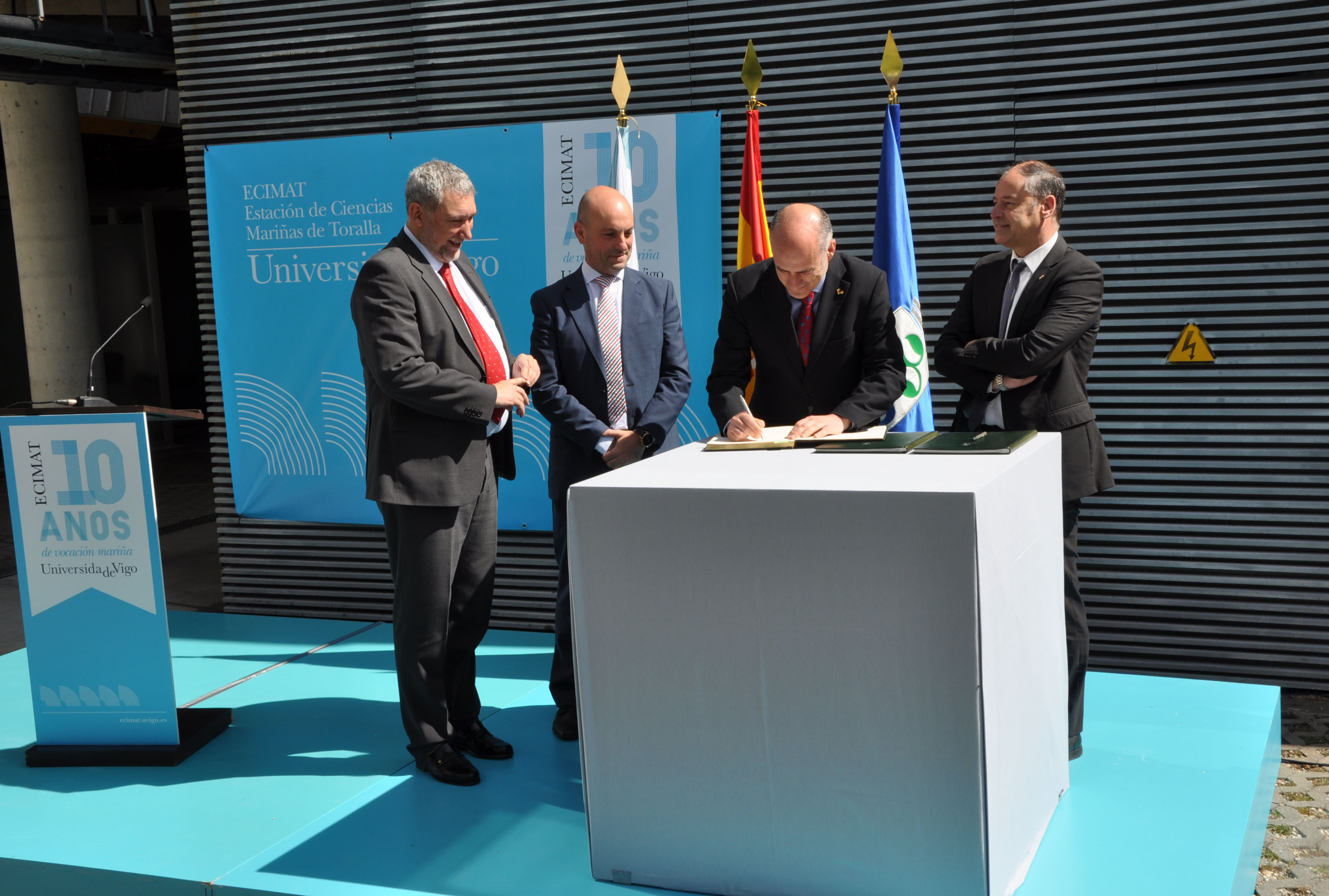 La Universidad de Vigo y la UPV/EHU han firmado un convenio para la constitución del nodo español de la gran infraestructura de investigación europea ‘European Marine Biological Resource Centre' (EMBRC). El objetivo del EMBRC, donde están integrados la Estación de Ciencias Marinas de Toralla y PIE (Estación Marina de Plentzia), es convertirse en una puerta única de acceso a los ecosistemas de todos los mares de Europa, para que cualquier investigador tenga a su disposición los recursos biológicos marinos necesarios para desarrollar su trabajo de investigación, así como acceso a todo el "know-how" en biología molecular y genómica, de manera que puedan explotarlos de un modo sostenible. Han participado en la firma, Salustiano Mato, rector da Universidad de Vigo; Iñaki Goirizelaia, rector da Universidad del País Vasco ; y Jesús Souza Troncoso, director de ECIMAT.
