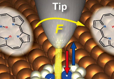 El estudio experimental y teórico, publicado en la prestigiosa revista Nature Chemistry, demuestra que en moléculas orgánicas apropiadas depositadas sobre una superficie, es posible activar la transferencia de átomos de hidrogeno dentro de la propia molécula acercando una punta metálica afilada lo suficientemente cerca.