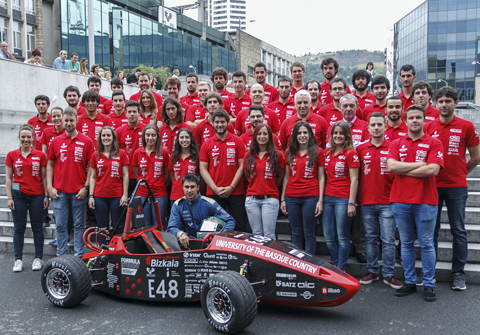 La Escuela de Ingeniería de Bilbao de la UPV/EHU ha presentado el monoplaza Formula Student Bizkaia, para volver a la competición de Formula Student en Silverstone (Inglaterra). El equipo, integrado por 50 alumnos y 4 profesores, ha variado este año su estrategia y ha optado por un desarrollo mucho más ambicioso. Así ha incorporado un motor más, ha mejorado la capacidad de almacenamiento de energía y ha modificado la composición del chasis, entre otras mejoras. Es, en definitiva, el mayor salto tecnológico dado hasta ahora por Formula Student Bizkaia para enfrentarse entre los días 14 y 17 en el circuito inglés a equipos de 130 universidades de 30 países.
