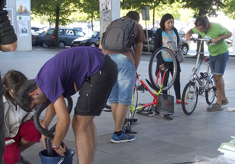 Así mismo, los soportales del Centro Ignacio Mª Barriola se convirtieron en un taller de bicicletas de la mano de la Asociación de Ciclistas Urbanoa Kalapié. Así, las personas que se acercaron aprendieron a arreglar su bicicleta y conocieron el proyecto de voluntariado "En bici sin edad". También recibieron información sobre los carriles bici de la ciudad y accesorios útiles para ciclistas, además de consejos para evitar el robo de bicicletas.