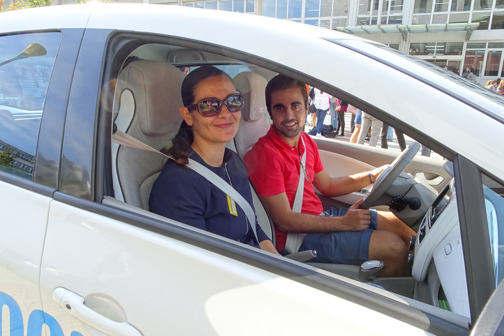 Estudiantes y profesorado pudieron probar un coche eléctrico. -