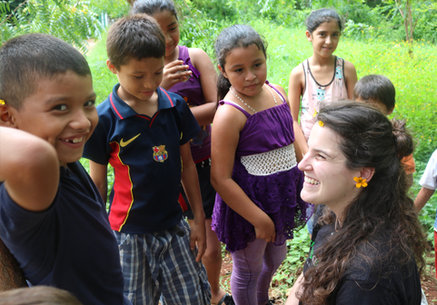 Nerea Gutiérrez con los niños de la comunidad de Celina Ramos