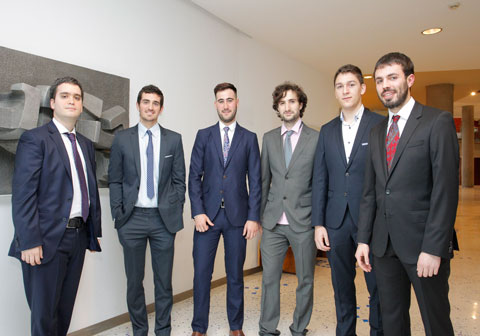 Alumnos sobresalientes (izq-dcha) Alberto Figueroa; Eduardo Zarate, Lander Rodríguez, Jon Ander Fandiño, Juan Izquierdo y Jon Andoni Apellaniz. Foto:UPV/EHU