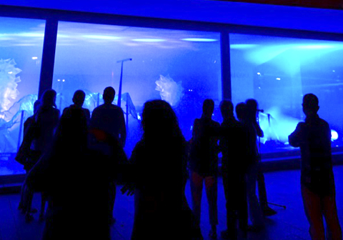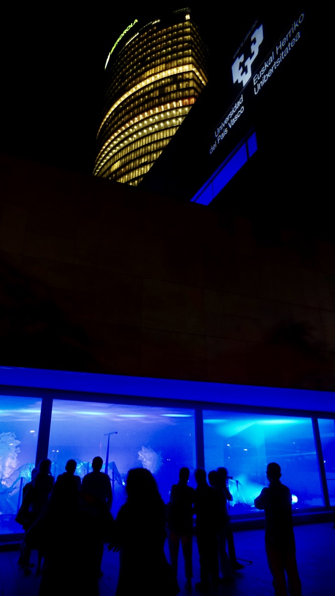 Con motivo de la celebración de la Noche Blanca de Bilbao, el alumnado del Máster de Arte Contemporáneo Tecnológico y Performativo de la Facultad de Bellas Artes de la Universidad del País Vasco/Euskal Herriko Unibertsitatea proyectó la obra de escenografía lumínica ‘El jardín de las luciérnagas' sobre la fachada de Bizkaia Aretoa, un espectáculo de luz que interaccionaba con el numeroso público que se acercó a contemplar la pieza.