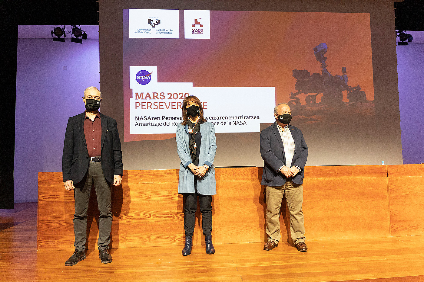 Tras seis meses y medio de viaje, este jueves llegará a Marte la misión Mars 2020 de la NASA. Su elemento central es el rover o vehículo autónomo Perseverance, un auténtico laboratorio móvil, que investigará la superficie del cráter Jezero. En el desarrollo de dos instrumentos del rover y en otros trabajos de la misión han participado los grupos de investigación de la Universidad del País Vasco que dirigen los catedráticos Agustín Sánchez Lavega y Juan Manuel Madariaga.
