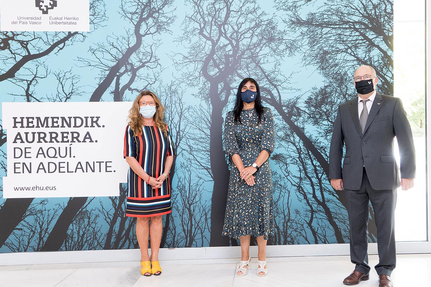 La consejera de Salud Gotzone Sagardui, la rectora y el secretario general. Foto: Mitxi / UPV/EHU -