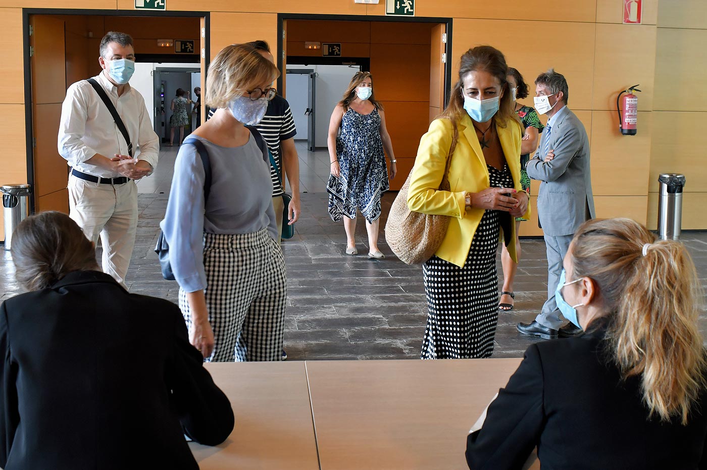 Asistentes a su llegada al acto retransmitido en streaming en el paraninfo de la Facultad de Ciencia y Tecnología. Foto; Mikel Mtz de Trespuentes/ UPV/EHU -