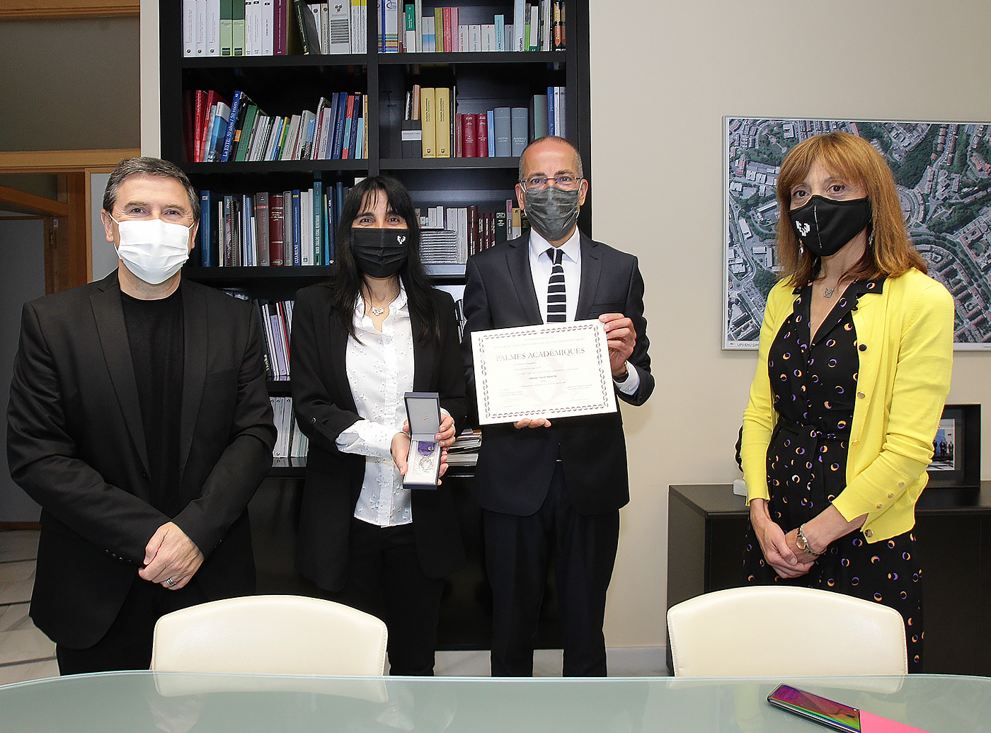 Esta mañana, el cónsul general ha acudido al Vicerrectorado del Campus de Gipuzkoa de la Universidad del País Vasco para hacer entrega a la profesora Nekane Balluerka de su diploma y medalla, así como para mantener un breve encuentro con la rectora de la Universidad del País Vasco, Eva Ferreira, y el vicerrector del Campus de Gipuzkoa, Agustín Erkizia.