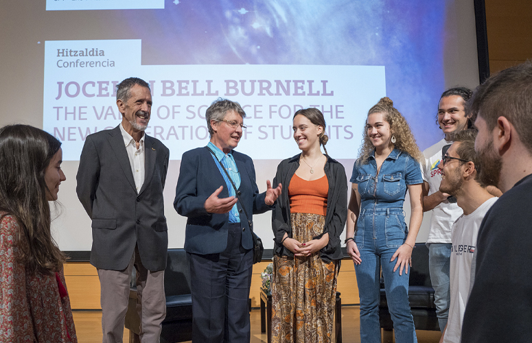 Un día antes de ser nombrada doctora honoris causa, Jocelyn Bell Burnell, la astrofísica que se quedó sin el premio Nobel, departió, en un abarrotado paraninfo, con estudiantes de la Facultad de Ciencia y Tecnología. Su consejo: “Preguntad e investigad”. Y sobre todo a las chicas: “Perseverad”.
