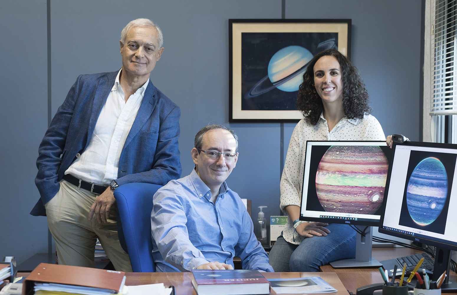 En el estudio publicado en Nature Astronomy se compara este nuevo jet de Júpiter con la estructura de la corriente en chorro ecuatorial del gigante gaseoso Saturno, donde el Grupo de Ciencias Planetarias de la UPV/EHU encontró en el año 2009 una estructura de vientos muy parecida a la revelada ahora en Júpiter, y descubierta en Saturno gracias a observaciones realizadas por la nave Cassini de NASA [2-3]. En ambos planetas, existe un jet ecuatorial rápido y estrecho a una altura de unos 200 mbar, trazado por el rápido movimiento de nieblas ecuatoriales. Tanto en Júpiter como en Saturno, los jets ecuatoriales elevados pueden estar relacionados con variaciones globales de temperatura que ocurren en las atmósferas de estos planetas de manera cíclica cada pocos años, pero que se pensaba estaban limitadas en altura en niveles de la estratosfera a alturas de 30-150 km por encima del nivel de la nueva corriente en chorro ecuatorial. Si el nuevo jet de Júpiter está relacionado con estas oscilaciones de temperatura de la atmósfera superior, entonces la corriente en chorro ecuatorial debería tener una intensidad variable tanto en Júpiter como en Saturno, y además en niveles mucho más profundos de lo que pueden explicar los modelos atmosféricos existentes. Estos intrigantes fenómenos se producen cerca de la tropopausa de Júpiter y Saturno, exactamente allí donde la dinámica atmosférica cambia por el efecto de desvanecimiento de las fuerzas de Coriolis, y donde las propiedades térmicas de la atmósfera cambian drásticamente. Las futuras observaciones del JWST tanto de Júpiter como de Saturno pueden arrojar nueva luz sobre estos fenómenos.