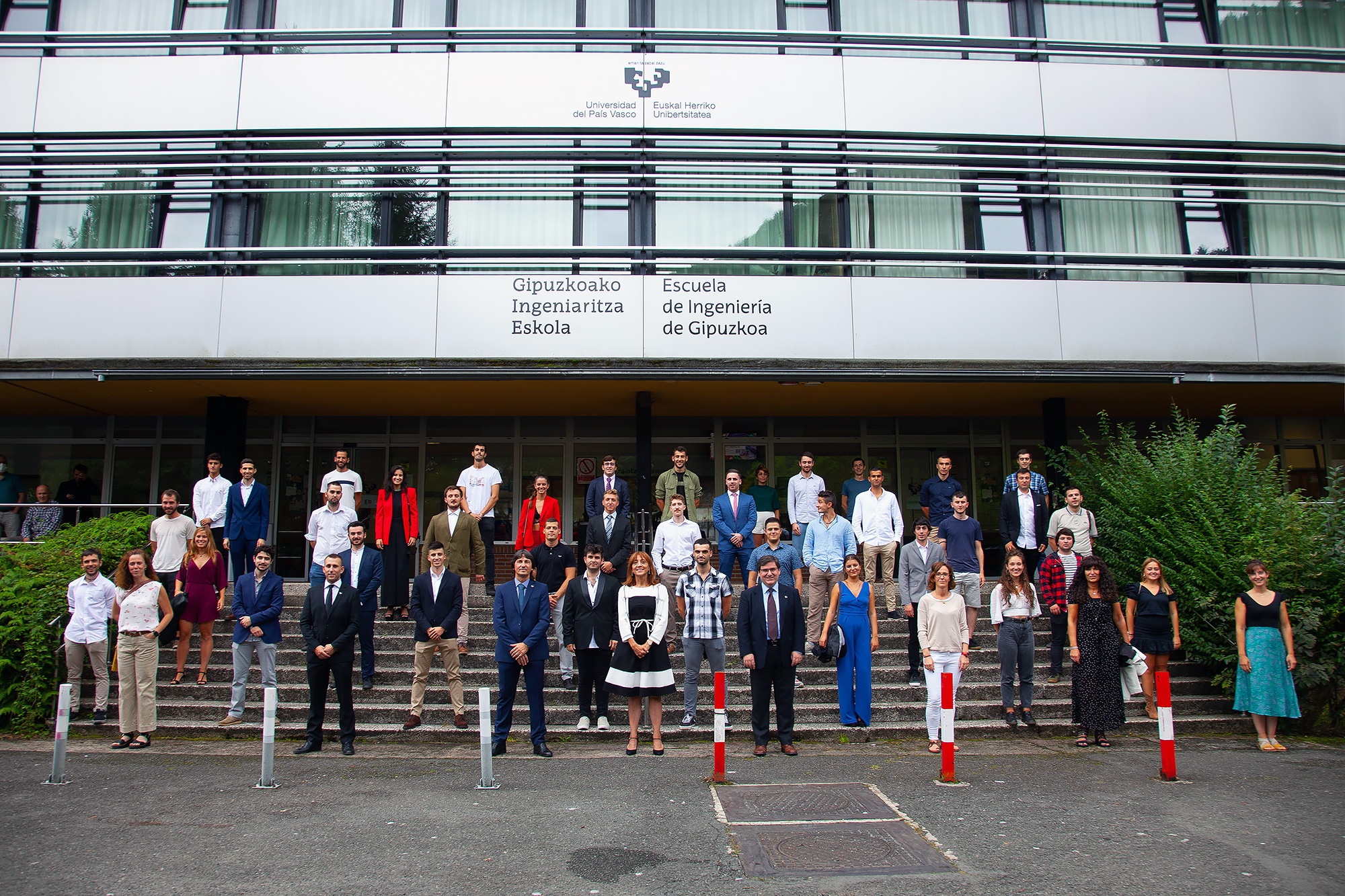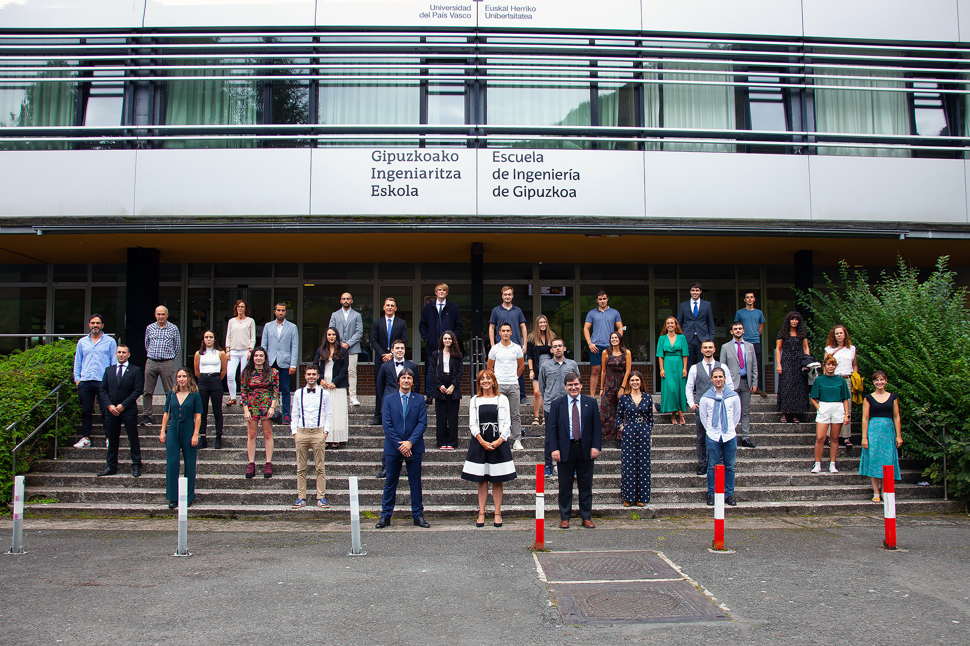 Con motivo de las medidas para impedir la difusión del COVID-19, sólo pudieron asistir al acto los graduados y las graduadas, y los miembros de la UPV/EHU. A pesar de la imposibilidad de estar allí presencialmente, se siguieron por vídeo las palabras de Jon Iraola, alcalde de Eibar, Juan Ángel Balbás, director de la Sociedad de Fomento Debegesa y Cristóbal Villasante, responsable del área de Energías Renovables de Tekniker.