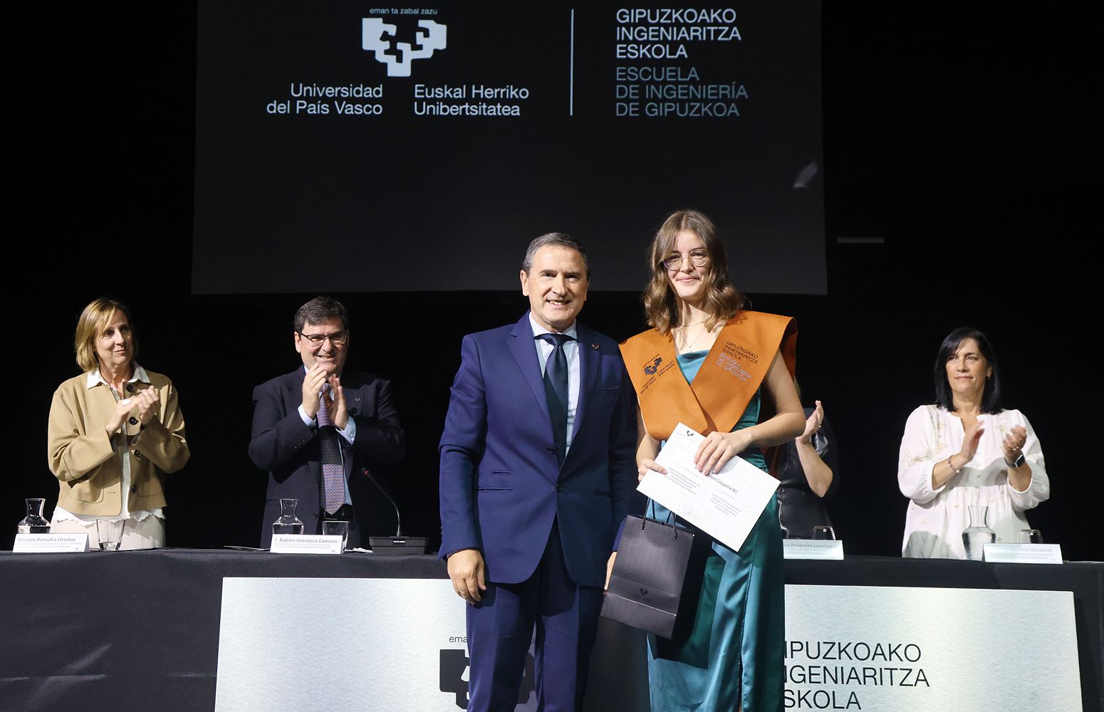 La Escuela de Ingeniería de Gipuzkoa de la Universidad del País Vasco celebró la ceremonia de entrega de diplomas al alumnado graduado durante el curso 2023-24. El acto tuvo lugar en el auditorio del Centro Superior de Música del País Vasco-Musikene, en Donostia / San Sebastián. Este año se han graduado un total de 162 estudiantes entre las titulaciones de Construcción e Industriales. Además, este año se ha graduado la segunda promoción del Doble Grado de Ingeniería Mecánica e Ingeniería Electrónica Industrial y Automática, que sigue siendo la titulación con la nota de corte más alta de todo Gipuzkoa.
