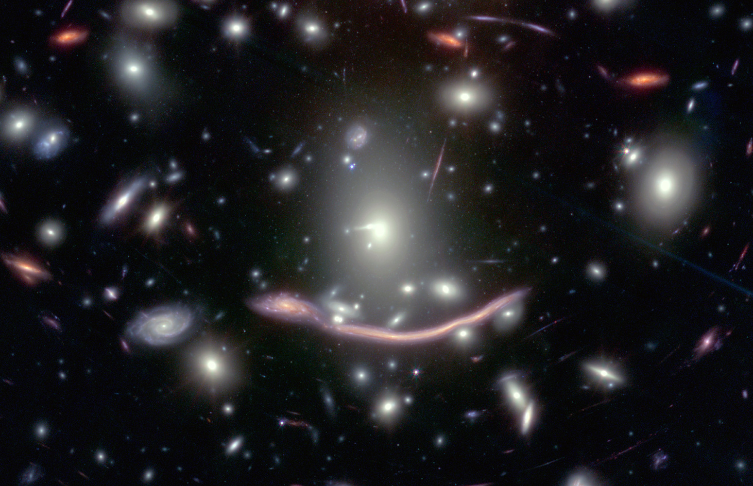 El equipo de astrofísicos localizó estas estrellas mientras inspeccionaban imágenes del JWST de una galaxia conocida como el Arco del Dragón, ubicada en la línea de visión desde la Tierra detrás de un cúmulo masivo de galaxias llamado Abell 370. Debido a la gravitación (por la inmensa masa de este cúmulo) se produce el llamado efecto de lente gravitacional, deformando la luz que nos llega de lo que esté detrás (el arco de dragón) y haciéndonos ver ese pasillo de proporciones cósmicas en lugar de la característica espiral. Que es lo que se vería sin ese efecto.