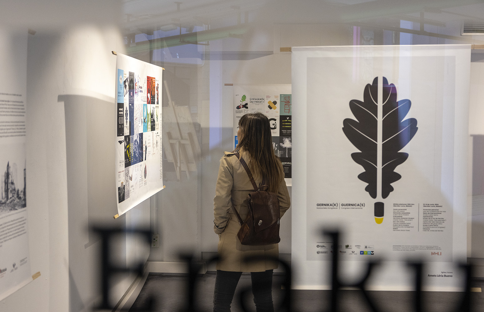 La hoja de roble, cartel elegido para el Congreso, simboliza que el municipio se ha recuperado y sigue mirando al futuro con esperanza. Esta exposición reúne los carteles que el alumnado ha realizado como parte de un proyecto educativo, un proyecto real, en el que el nivel de calidad de los trabajos presentados ha derivado en que los quieran compartir en esta sala de exposiciones y el próximo mes en el Museo Euskal Herria de Gernika.
