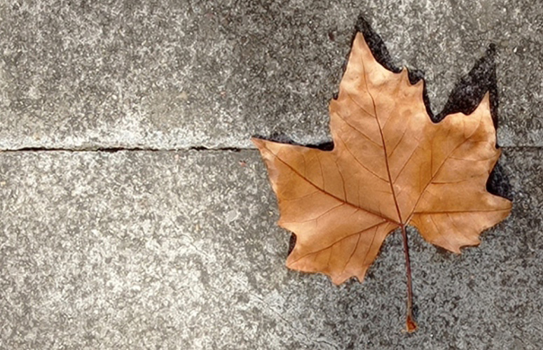Paseando por el campus, atestado el suelo de hojas muertas, descubrí la soledad y belleza de una de ellas, acomodada sobre el pavimento de forma aleatoria…