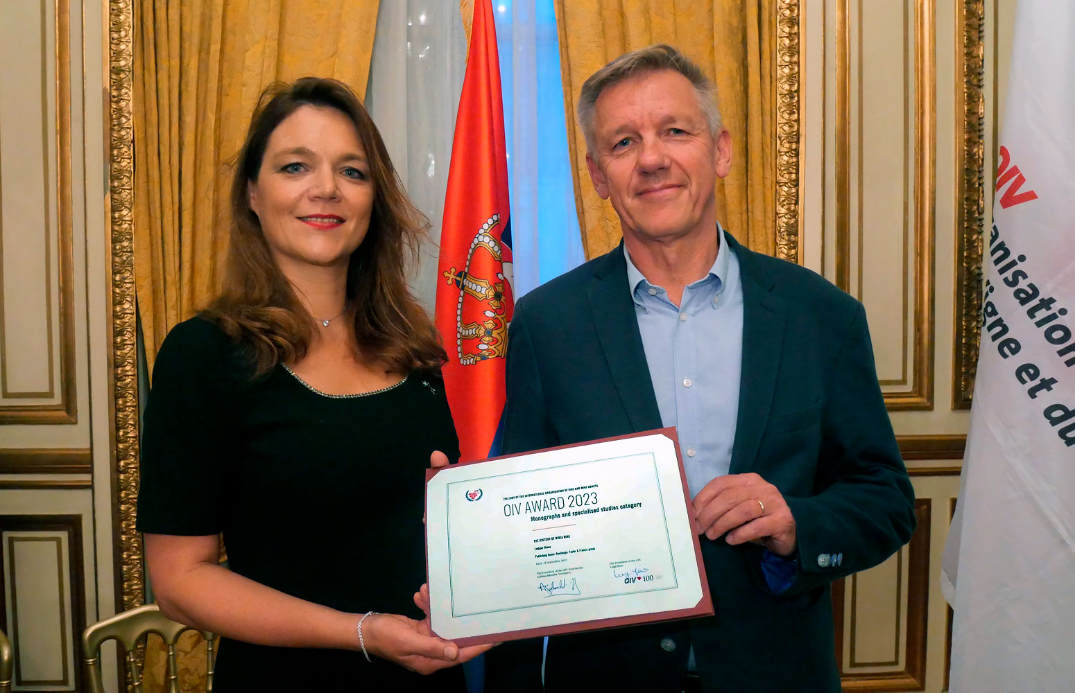 La Organisation Internationale de la Vigne et du Vin (OIV), reconocida entidad internacional en el ámbito del vino, ha premiado la obra ‘The History of Rioja wine. Tradition and invention’, escrita por Ludger Mees, catedrático de Historia Contemporánea en la Universidad del País Vasco. El libro, publicado por la editorial Routledge, ofrece un relato informativo, cronológico y en profundidad del vino de Rioja desde mediados del siglo XIX hasta la actualidad. El profesor Mees recogió este prestigioso galardón en una gala que recientemente tuvo lugar en París, en la embajada de Serbia.