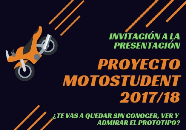 El martes, 2 de octubre, a las 19.00 en el Salón de Actos de la Escuela de Ingeniería de Vitoria-Gasteiz, el alumnado del proyecto MotoStudent realizará la presentación oficial de la moto con la que van a competir el fin de semana del 7 de octubre en Alcañiz.
