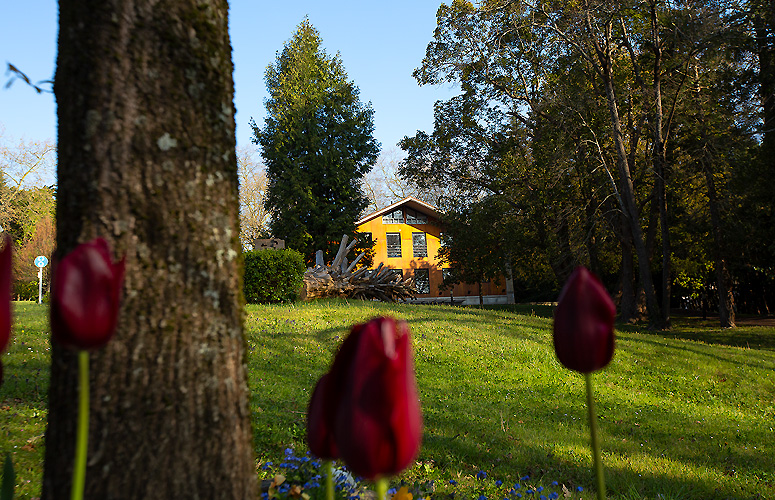 Las primeras luces del día encienden la primavera en el espacio que ocupa el Vicerrectorado del Campus de Gipuzkoa. Una atalaya rodeada de naturaleza que luce pletórica en esta época del año.