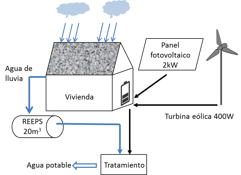“Este será un espacio de encuentro, investigación y evaluación en la que se establecerán herramientas de trabajo para estudiantes, formadores e investigadores en el ámbito de la energía, el agua y la vivienda”. Entre otras acciones, se plantea: por un lado, convertir el agua de lluvia en agua potable utilizando una tecnología (REEPS) respetuosa con el medio ambiente y, por otro, producir energía eléctrica con recursos renovables (ver diagrama adjuntado).