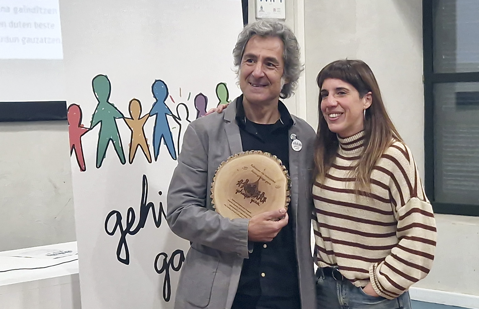En un acto celebrado en la Fundación Cristina Enea de Donostia, la iniciativa ‘Gehiago gara’ reconoció la labor de la Facultad de Educación y Deporte de la Universidad del País Vasco y, en concreto, la del profesor Txabi Arnal por su trabajo realizado durante años en ese centro de la UPV/EHU, por todo el conocimiento ofrecido al futuro profesorado para tratar el tema de la muerte en los niños y niñas, y por darles a conocer la literatura infantil en torno a la muerte.