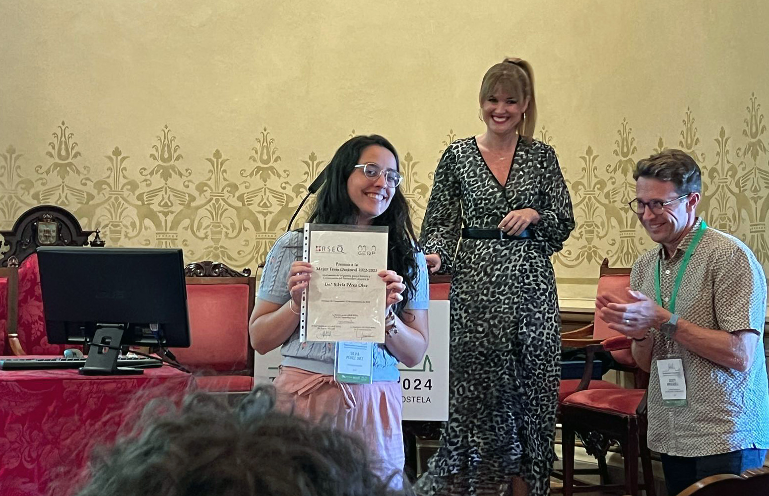 Dentro de la Real Sociedad Española de Química está el grupo especializado en química para el estudio y conservación del patrimonio cultural, que es quien ha otorgado el premio a la tesis de Silvia Pérez titulada “Ennegrecimiento del cinabrio rojo en las pinturas murales de Pompeya: impacto volcánico, entorno de enterramiento y exposición atmosférica”. El premio lo recibió el viernes, 27 de septiembre, en el marco de la I reunión bienal que el grupo celebrará en Santiago de Compostela.