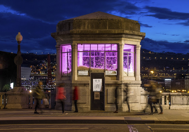 La antigua cabina de mandos del puente de Deusto, en Bilbao, alberga una nueva propuesta artística. La creadora Sara Cuerdo, formada en la facultad de Bellas Artes de la UPV/EHU, es la autora de la instalación que lleva por título “Lapso: tiempo transcurrido entre dos instantes”. Los viandantes podrán contemplarla hasta el próximo 8 de abril. La instalación forma parte del programa "Intervenciones artísticas en el Puente de Deusto" en el que participa la UPV/EHU.