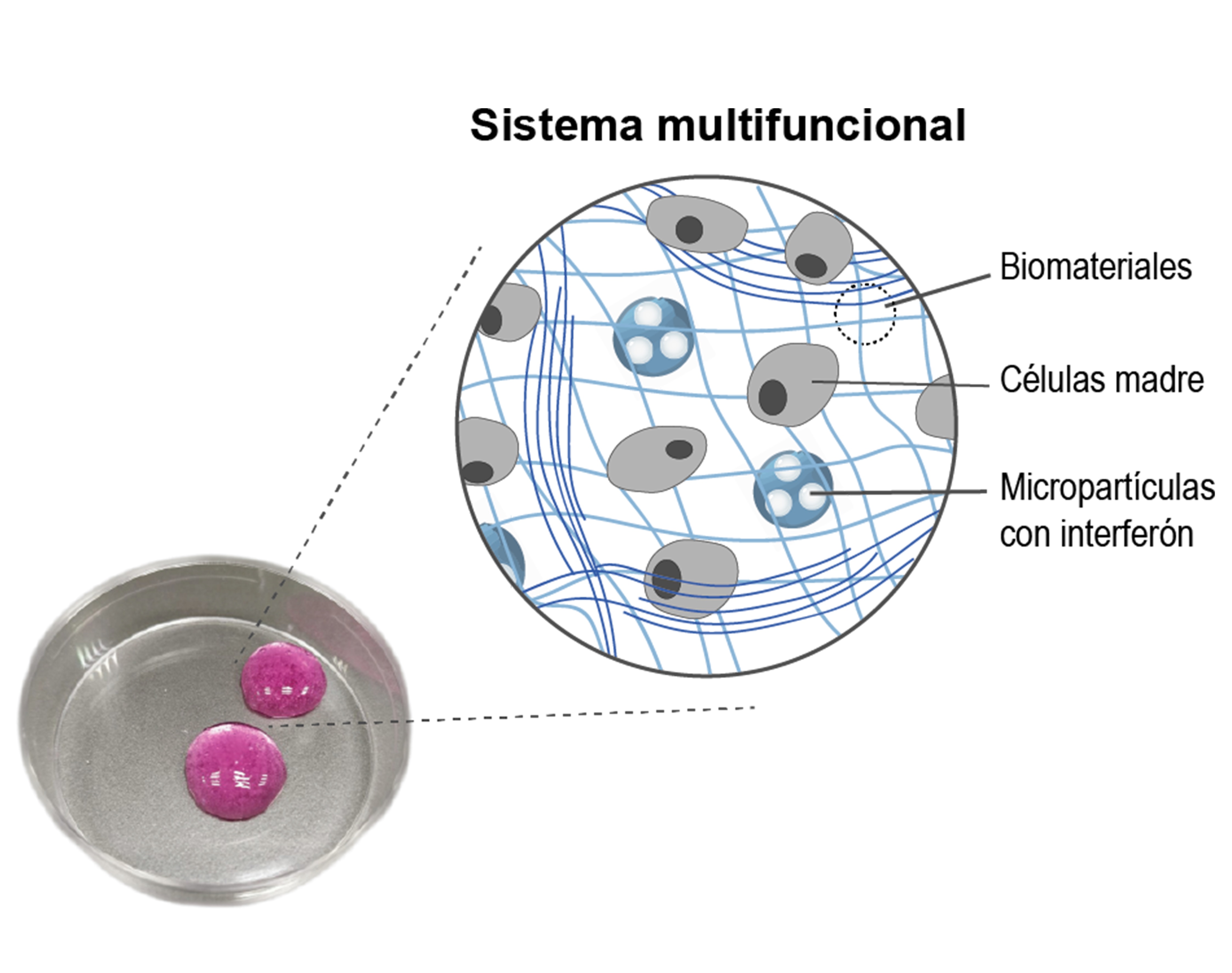 Recientemente, este grupo de investigadoras e investigadores de la UPV/EHU, entre los que cabe destacar a la doctora Ainhoa Gonzalez Pujana y al doctor Edorta Santos Vizcaíno, ha diseñado y probado con éxito un sistema multifuncional en colaboración con la Universidad de Harvard en Cambridge, concretamente con el grupo liderado por el doctor David J. Mooney. “El sistema, además de las células madre, incorpora otros elementos como son los biomateriales y las micropartículas que liberan interferón. De ese modo, son capaces de realizar una activación prolongada de las células para que liberen de forma sostenida las citoquinas y los factores de crecimiento claves para el tratamiento de esas patologías, además de mejorar la persistencia de las células en el organismo y la bioseguridad de la terapia”, indica la doctora Hernández.
