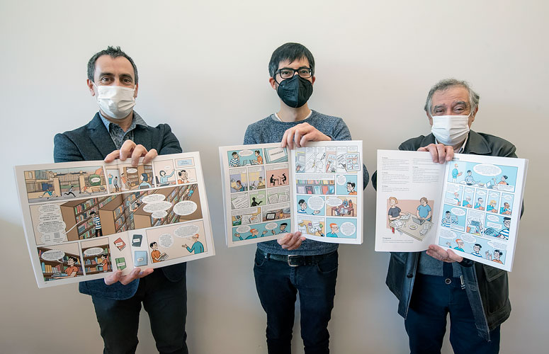 Esta mañana se ha presentado el libro Komikiak aztertzeko gida bat, una guía con forma de cómic que recoge, de forma introductoria, los principales aspectos relacionados con el estudio de los cómics, explicando su lenguaje, producción, métodos de distribución, campos de investigación y tradiciones y géneros que se han desarrollado a lo largo y ancho del mundo, entre otros.