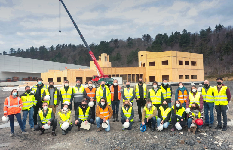 A la visita, les ha acompañado el diputado de Medio Ambiente y presidente de Naturklima, José Ignacio Asensio, Juan José Arrizabalaga, director en funciones de la Escuela Técnica Superior de Arquitectura de la Universidad del País Vasco, Jon Begiristain, director del Máster propio en Estructuras, Construcción y Diseño en Madera, Mikel Martínez, presidente de Habic y Beñat Aranburu, arquitecto del edificio, de la ingeniería Asmatu. También han estado presentes el Gerente de la constructora Campezo y de la empresa proveedora de la estructura de madera, Egoin.