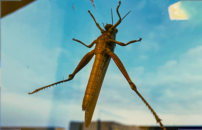 Un saltamontes en la ventana
