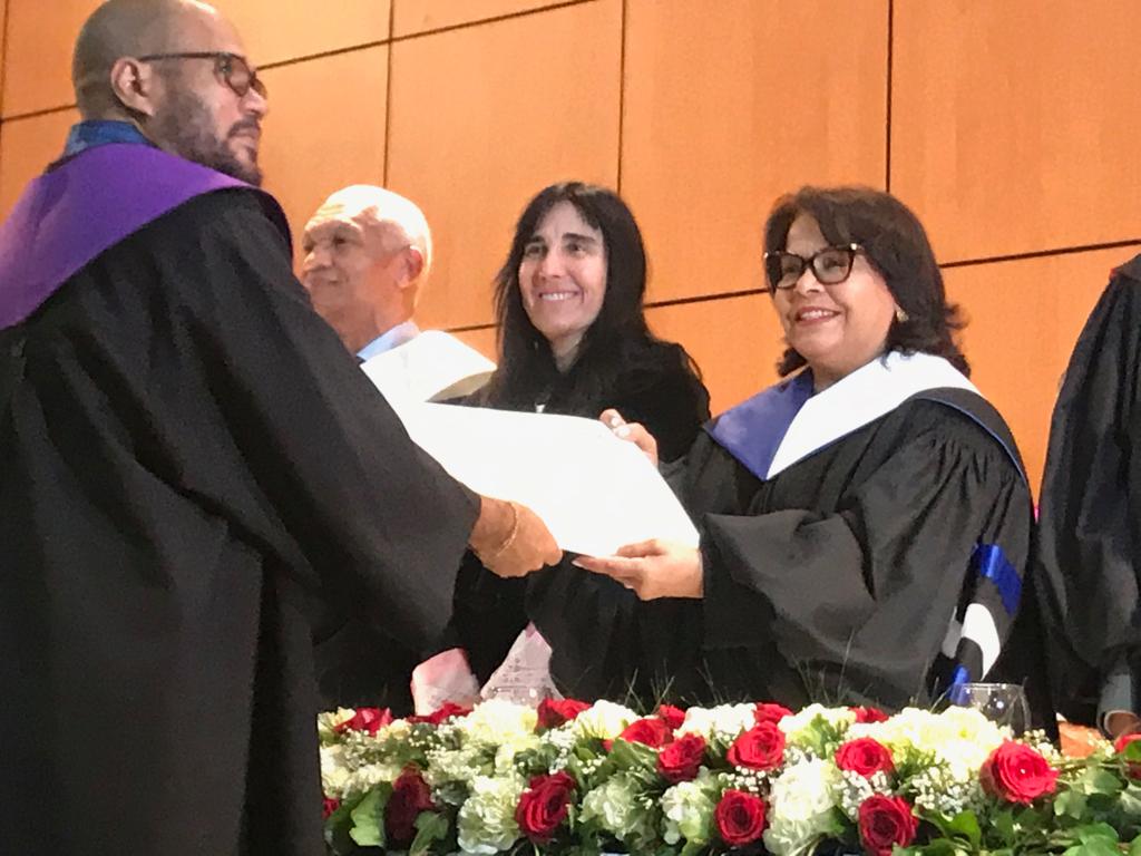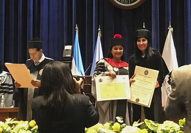 El pasado martes, la rectora hizo entrega de los diplomas (12 master y 4 de doctorado) en el auditorio de la Universidad Rafael Landívar, de la capital guatemalteca, y hoy viernes se va a realizar una nueva ceremonia, en el Aula Magna de la Universidad Autónoma de Santo Domingo, donde se entregarán 20 diplomas de máster y se investirán a 55 doctores y doctoras. En total, 32 personas han recibido su título de máster por la UPV/EHU y 59 más su título de doctor o doctora.