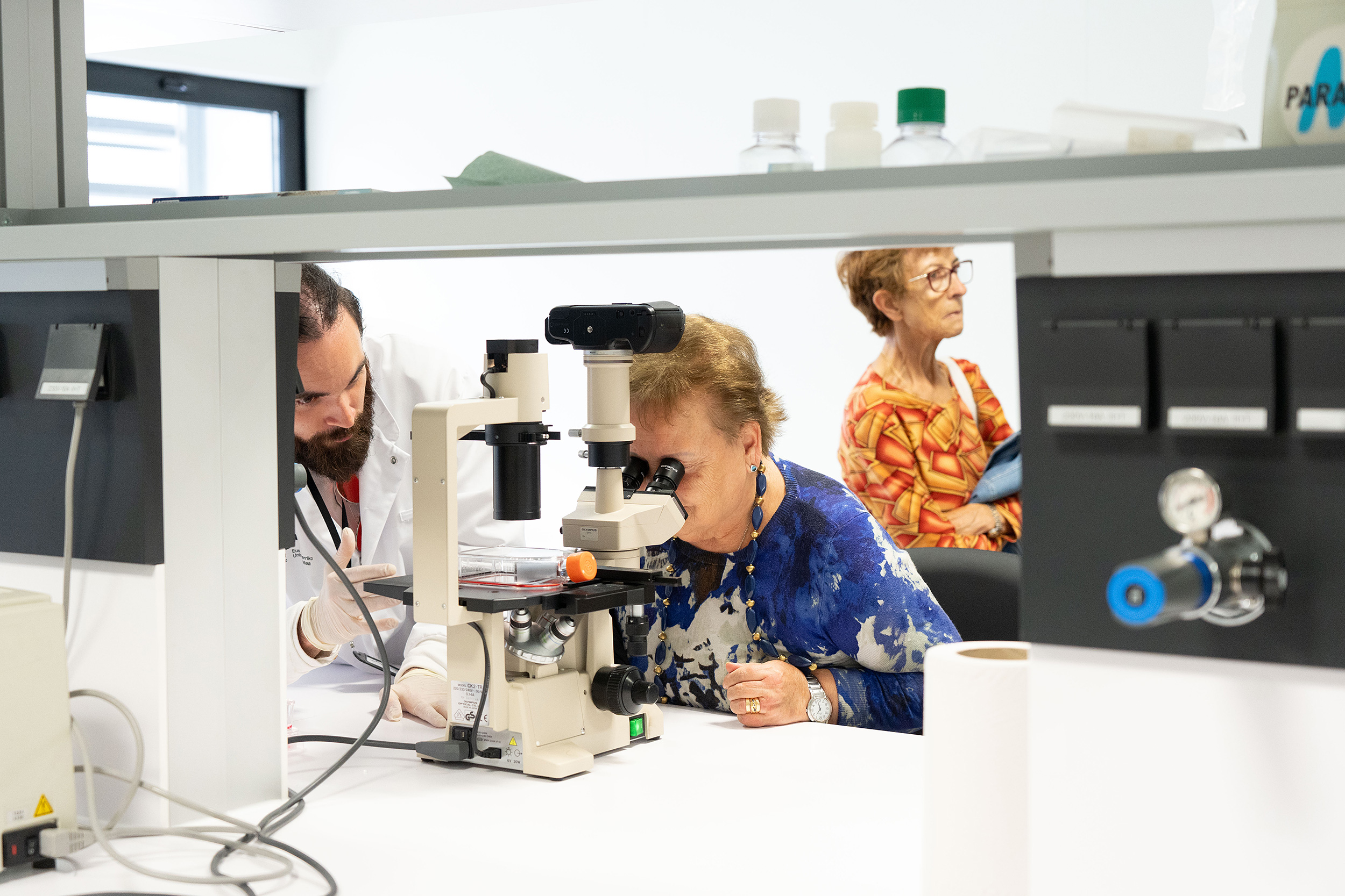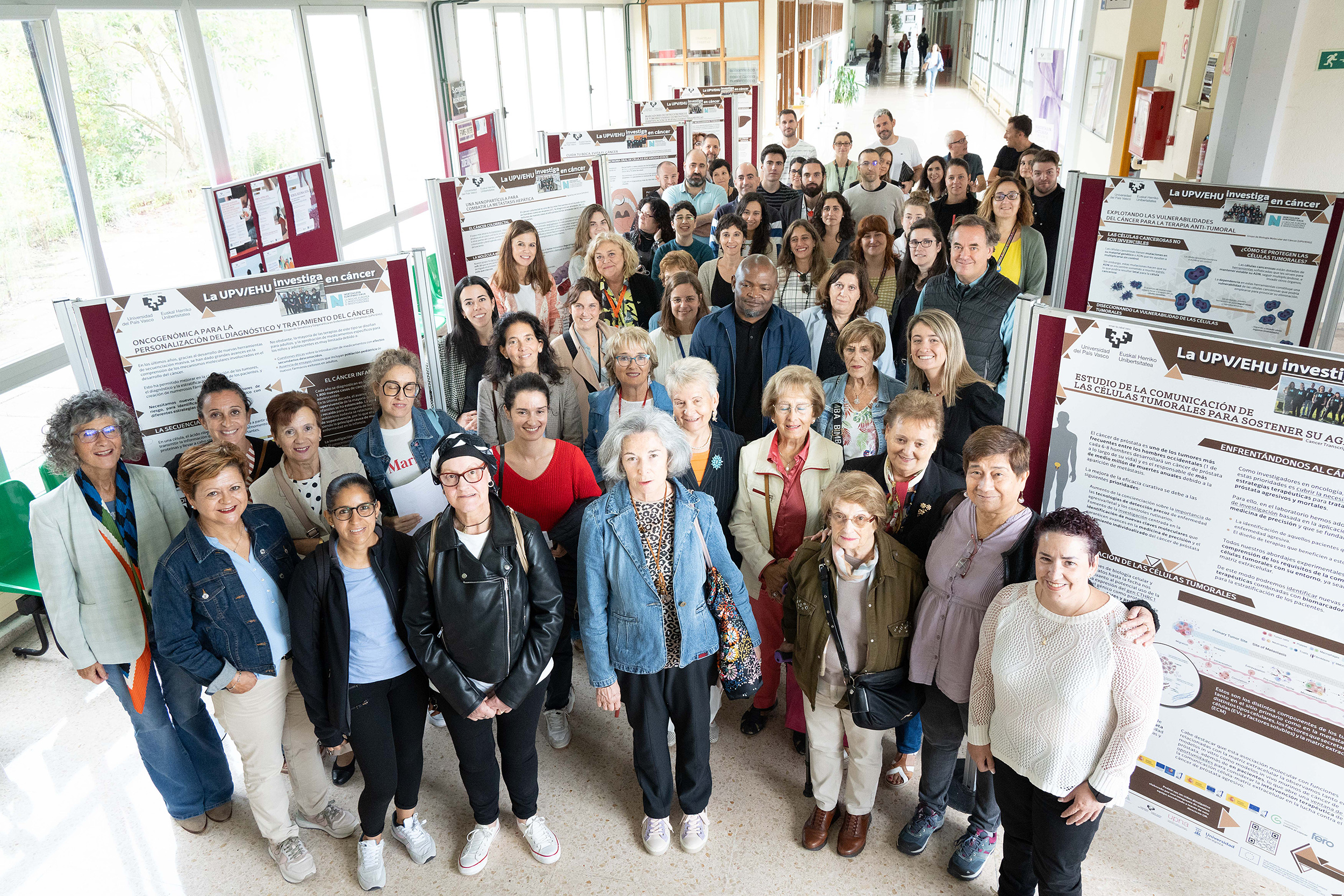 El campus de Bizkaia recibió ayer la visita de 26 personas vinculadas a la Asociación Española Contra el Cáncer de Bizkaia. Las y los pacientes, familiares, entidades colaboradoras y personas voluntarias de la AECC realizaron un recorrido por la exposición “Investigación en cáncer en la UPV/EHU”. Distintos grupos de investigación en cáncer de la UPV/EHU les explicaron de primera mano el objetivo y desarrollo de sus proyectos. El itinerario incluyó una ruta por los laboratorios de las Facultades de Medicina y Enfermería y de Ciencia y Tecnología, así como el centro de investigación María Goyri.