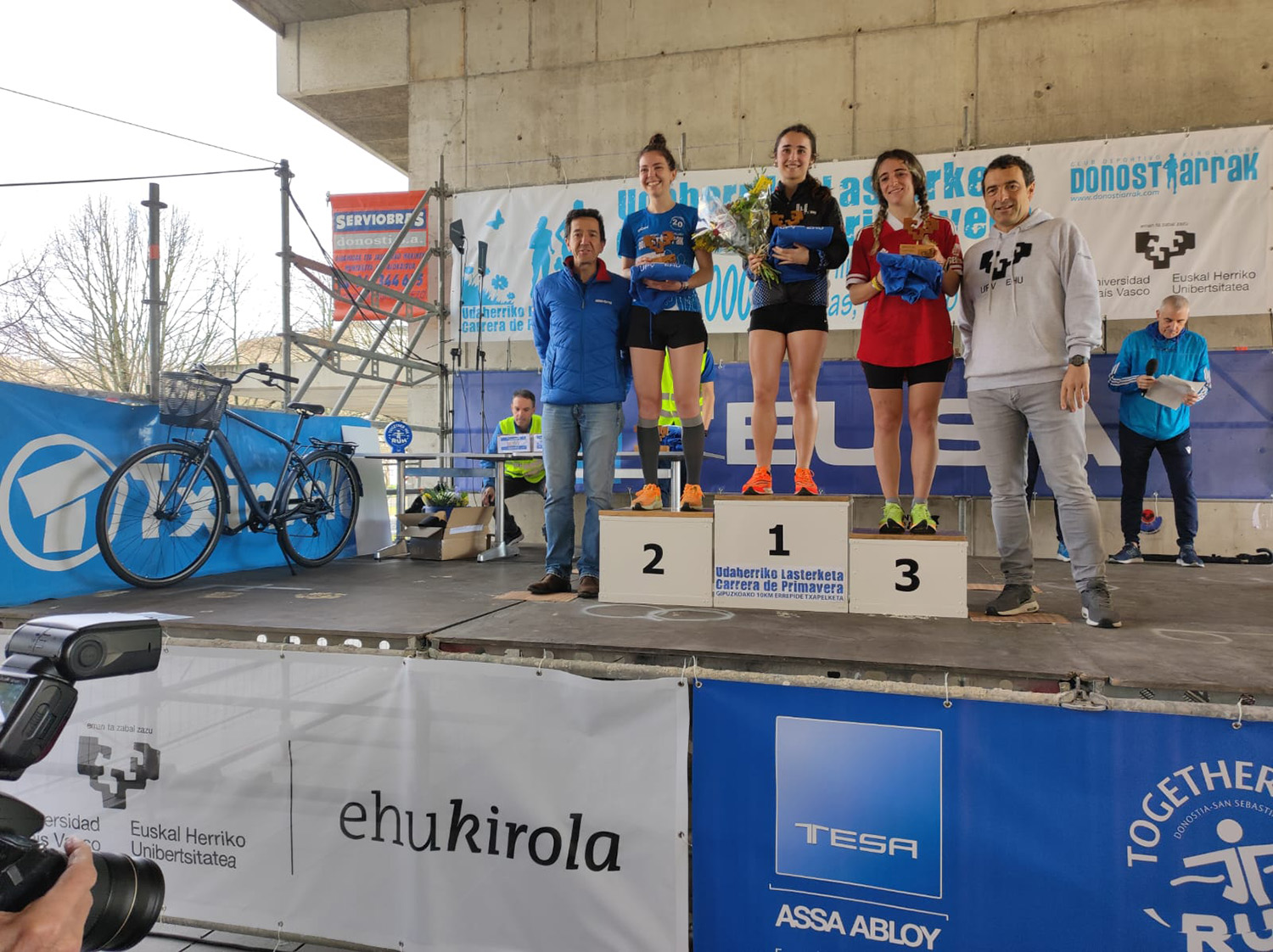 Oihana Kortazar (dorsal 1), Xabi Prieto (dorsal 1) y Monica Batan (dorsal 0). Foto: Luis Peralta -