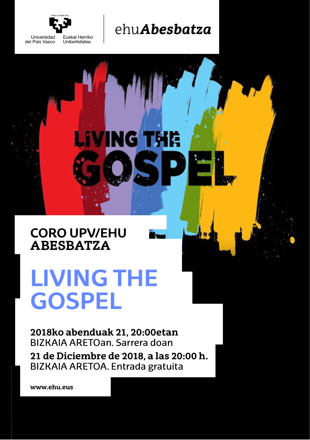 Living the Gospel Concierto FECHA: 21 de diciembre de 2018 HORA: 20:00 LUGAR: Bizkaia Aretoa Entrada gratuita