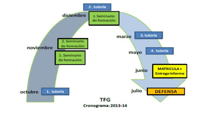 - La realización del TFG está vinculada a un proceso formativo con actividades presenciales y no presenciales (12 ECTs – 300 horas de trabajo del estudiante).