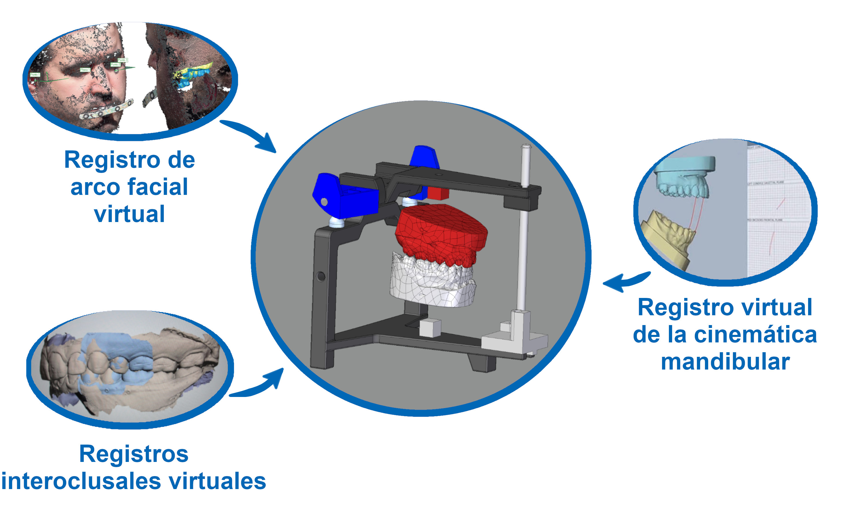 Así, para realizar tanto el montaje de las réplicas digitales de las arcadas dentales (impresiones digitales) como el ajuste de parámetros de una manera personalizada en estos articuladores virtuales, en los últimos años se han desarrollado procesos y dispositivos para la toma de registros del paciente de manera virtual.