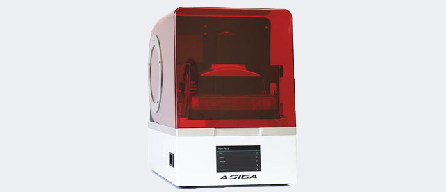 Impresora 3D basada en la tecnología de modelado procesamiento digital de luz (volumen de impresión 119x67x76 mm). Material(es) de modelado: resinas (algunas biocompatibles)