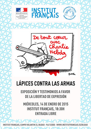 El Institut français y Cartooning for Peace organizan una exposición de 15 dibujos y caricaturas del mundo entero a favor de la libertad de expresión. Los dibujantes Joep Bertrams (Países Bajos), Vadot (Bélgica), Firoozeh (Irán), Faro (Francia), Kap (España), Boukhari (Palestina), Kichka (Israel), Chappatte (Suiza), Riber (Suecia), Boligán (México), Mana Neyestani (Irán), Côté (Canadá), Rayma (Venezuela), Plantu (Francia) y Hall (Estados-Unidos) expresan, a través de su trabajo, su solidaridad con sus compañeros de Charlie Hebdo y su defensa de la paz.