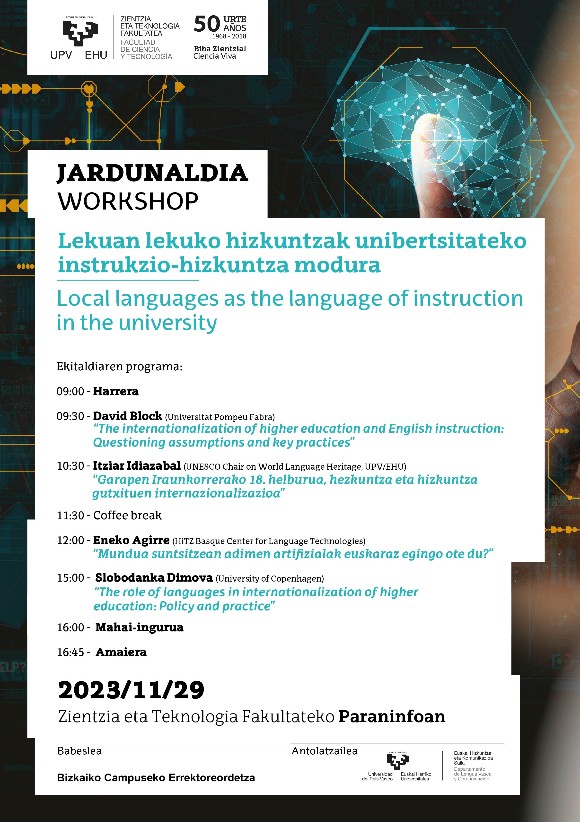 | 09:00-16:45 | Zientzia eta Teknologia Fakultatea: Lekuan lekuko hizkuntzak uniberstsitateko instrukzio-hizkuntza modura (jpg, 734 Kb) |
