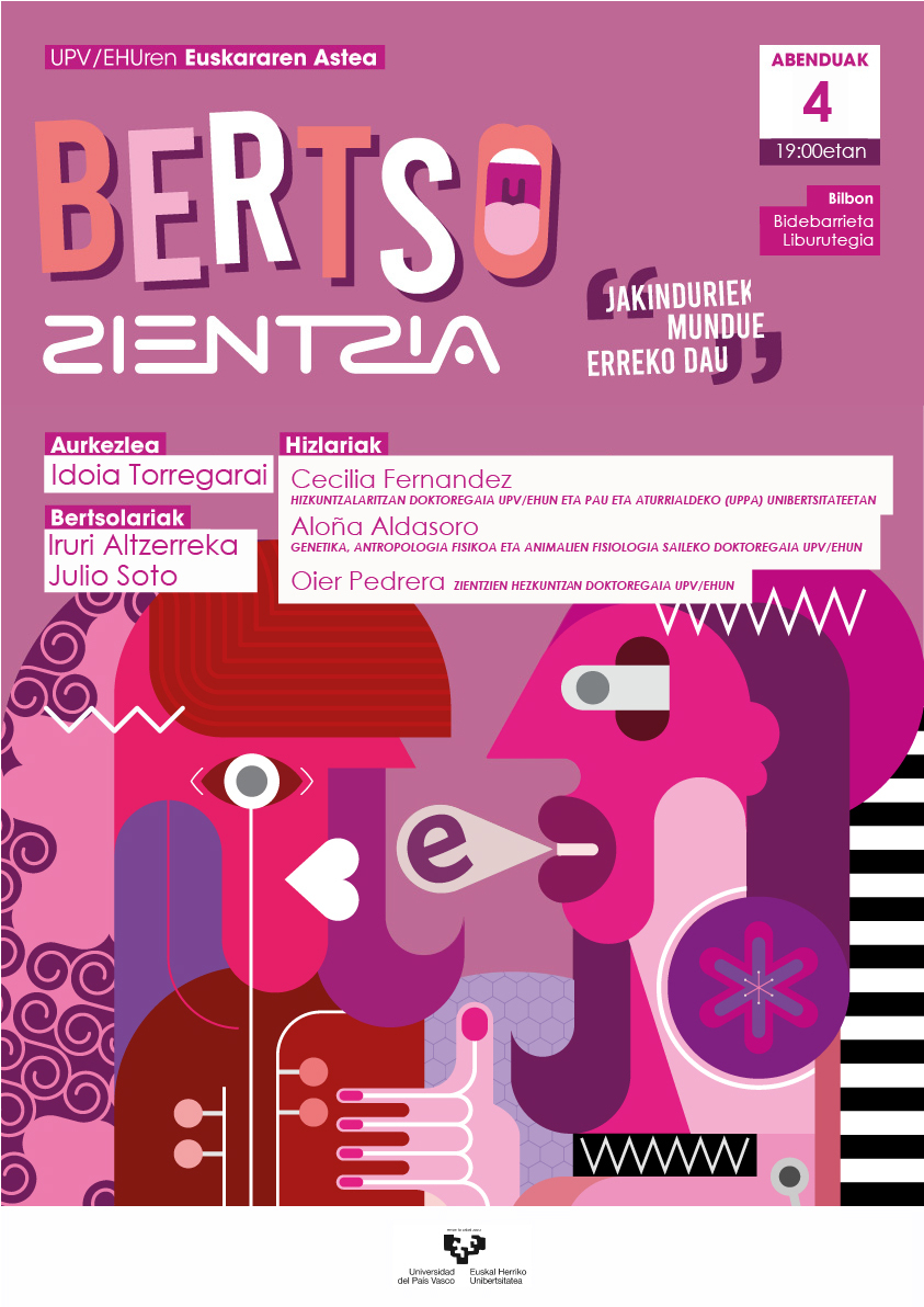 El 4 de diciembre, con motivo de la Semana del Euskara, se celebrará una nueva edición de Bertsozientzia en la Biblioteca Bidebarrieta. Los bertsolaris Iruri Altzerreka y Julio Soto cantarán bertsos a los temas tratados por los y las investigadoras Cecilia Fernández, Oier Pedrera y Aloña Aldasoro.