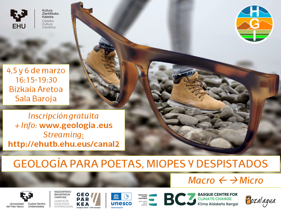 Con el objetivo de mostrar las aproximaciones que se realizan desde las diversas disciplinas geológicas a la definición, denominación y conservación del patrimonio, los días 26, 27 y 28 de marzo se celebrarán las jornadas divulgativas “Geología para poetas, miopes y despistados. PATRIMONIO patrimonio”.