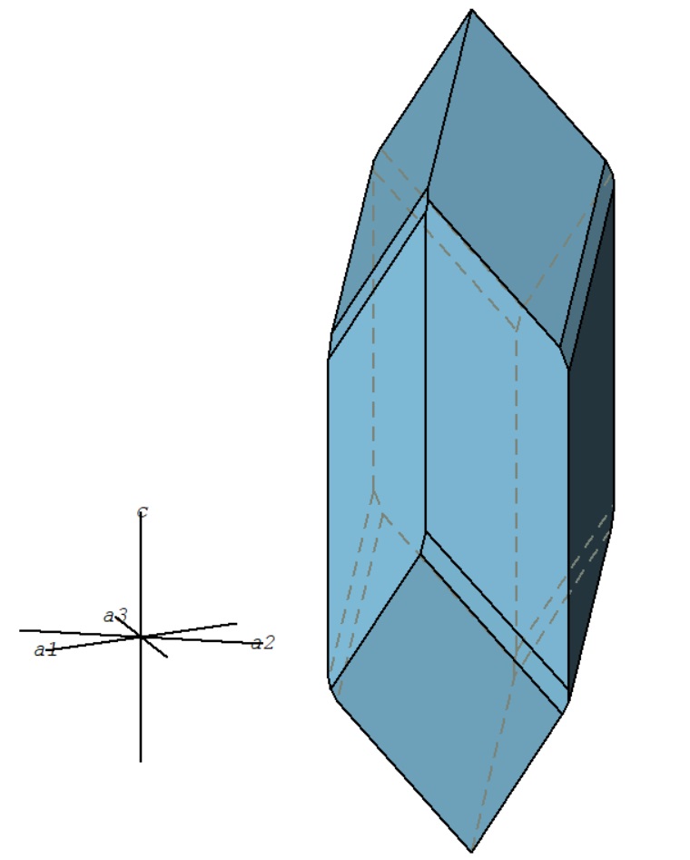Sólido 29: G.P. -3 Características cristalográficas Formas cristalinas Ejemplo de un mineral de esta clase cristalina: Dioptasa Imagen de un cristal de Dioptasa Características cristalográficas Sistema cristalino: Romboédrico Grupo puntual: -3 Relación paramétrica: a:b:c = 1 : 1 : 0,534 Ángulos: α=90º; β=90º; γ=120º Clase: Romboédrica Arriba Formas cristalinas Formas: {110} {021} {-141} Arriba Ejemplo de un mineral de esta clase cristalina: Dioptasa Mineral: Dioptasa Dioptase: Mineral information, data and localities. (mindat.org) Dioptase Mineral Data (webmineral) Arriba Imagen de un cristal de Dioptasa Arriba