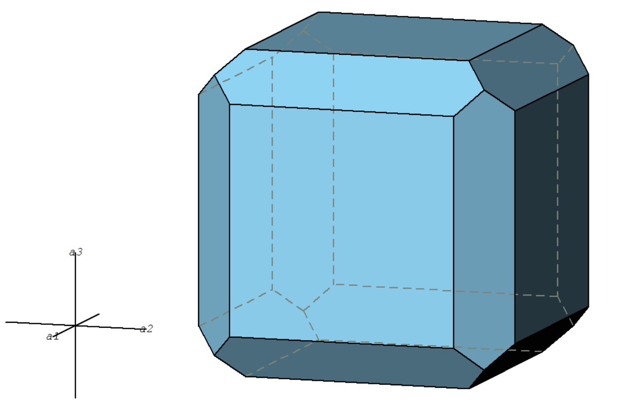 Sólido 53: G.P. m3m Características cristalográficas Formas cristalinas Ejemplo de un mineral de esta clase cristalina: Fluorita Imagen de un cristal de Fluorita Características cristalográficas Sistema cristalino: Cúbico Grupo puntual: m3m Relación paramétrica: a:b:c = 1 : 1 : 1 Ángulos: α=90º; β=90º; γ=90º Clase: Hexaquisoctaédrica Arriba Formas cristalinas Formas: {100} 4.8 {110} 5.8 Arriba Ejemplo de un mineral de esta clase cristalina: Fluorita Mineral: Fluorita Fluorite: Mineral information, data and localities. (mindat.org) Fluorite Mineral Data (webmineral) Arriba Imagen de un cristal de Fluorita Arriba