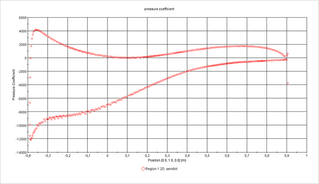 Representación gráfica de distribución del coeficiente de presión alrededor de un perfil aerodinámico
