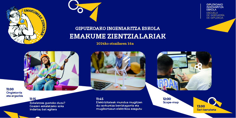 El alumnado de ESO1 conoce el trabajo de las Mujeres Investigadoras de la Escuela de Ingeniería de Gipuzkoa. Conocer la investigación que se realiza en los laboratorios escolares (ver algún experimento) y a través de una mesa redonda conocer la trayectoria, dificultades, aficiones… de los investigadores. Si los centros quisieran trabajar esta acción antes, les mandaríamos una “ficha” de cada investigador para que después ellos mismos prepararan las preguntas.