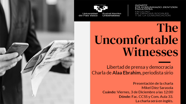 Próximo viernes 3 de diciembre a las 12:00 conferencia "los testigos incómodos" sobre libertad de prensa y democracia. La charla se realizará en el aula 33 de la facultad.
