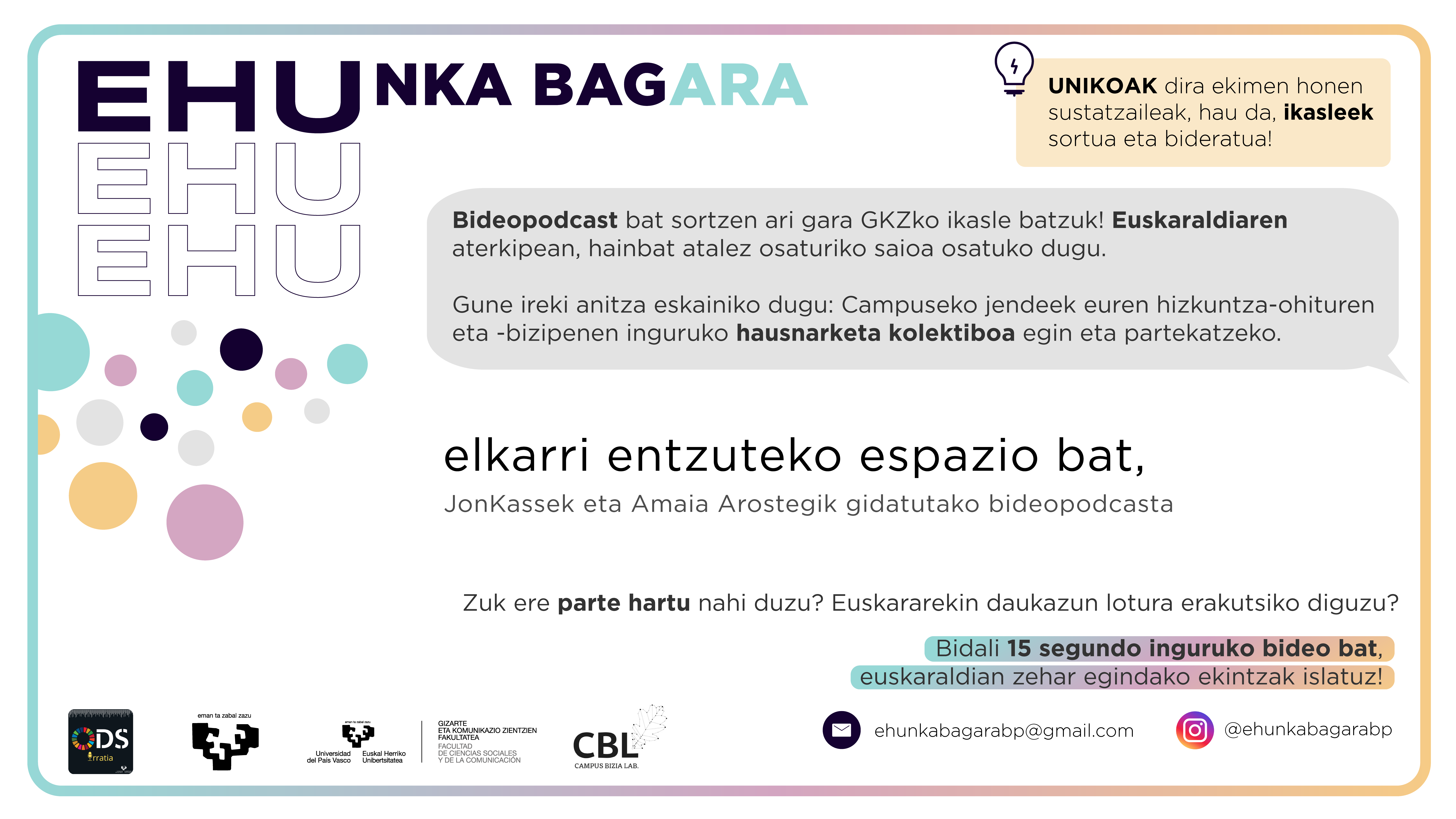En el marco de Euskaraldia 2022 se está realizando EHUnka bagara, un videopodcast que se entronca dentro del proyecto ODS Irratia